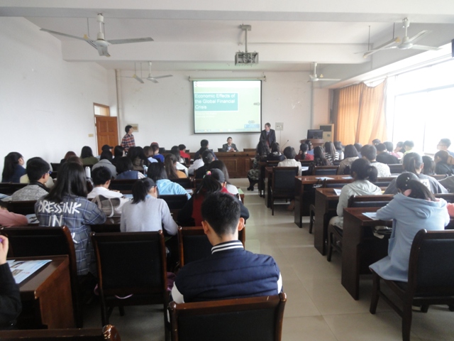 随后,Hatton教授在经济管理学院作了主题为“Economic Effects of the Global Financial Crisis”的学术讲座。该项目中国区负责人还向师生们详细介绍了“3+1”本硕项目,师生认真聆听,积极提问,讲座取得良好效果。